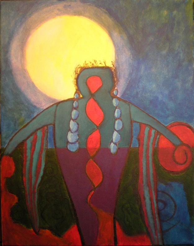 - “Manifesting Sun and Moon” – ink and acrylic on canvas – 18″ x 24″