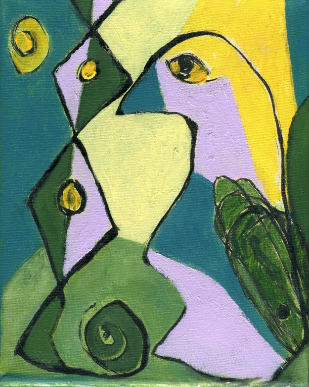 - “Green Ideas” – acrylic and ink on canvas – 8″ x 10″