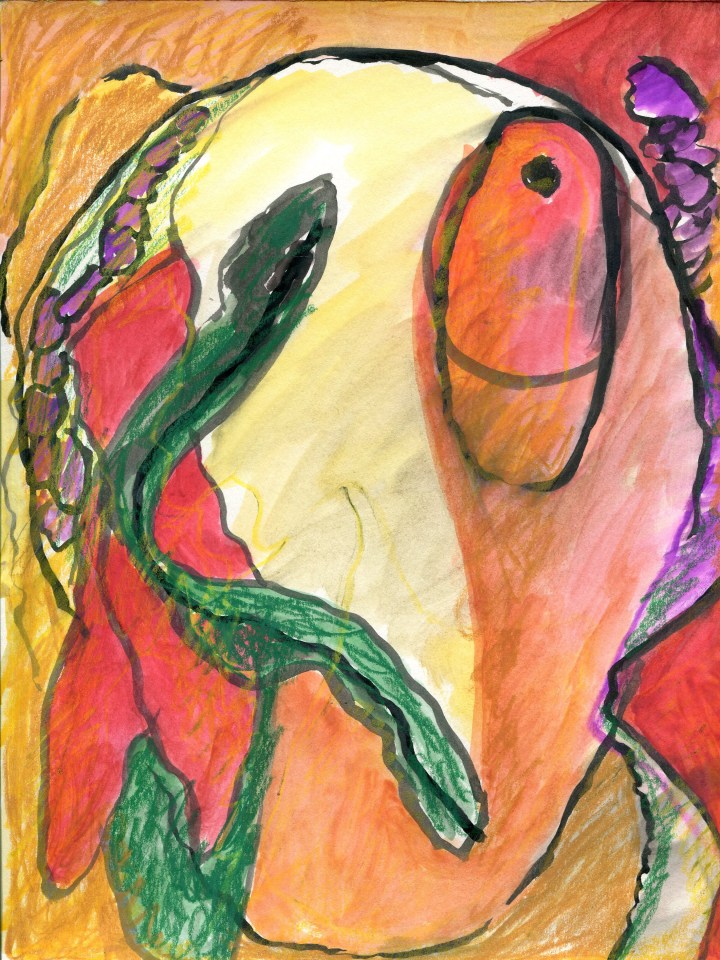 “Dali’s Cow” – mixed media on paper = 9″ x 12″