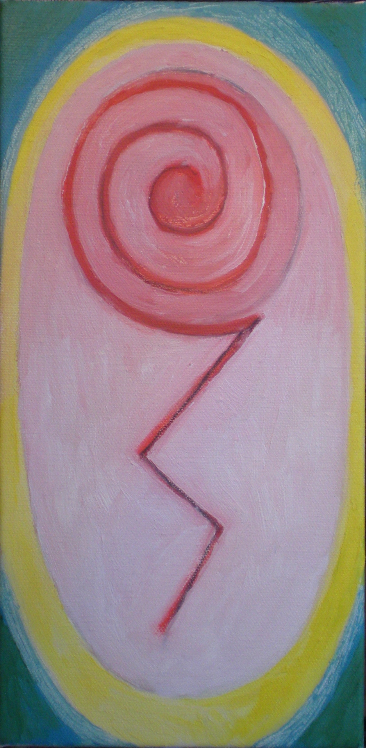 “Cosmic Egg” – oil, cold wax on canvas – 6″ x 12″