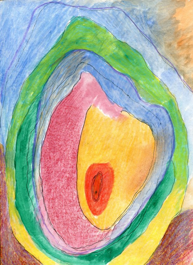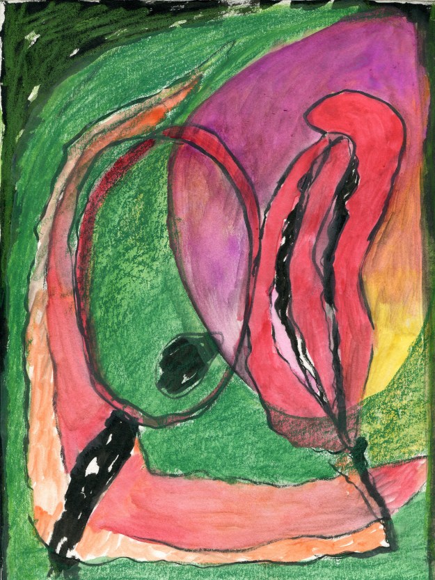 - “Abstract (for the heck of it) – ink, watercolor, prismacolor on paper – 9″ x 12”